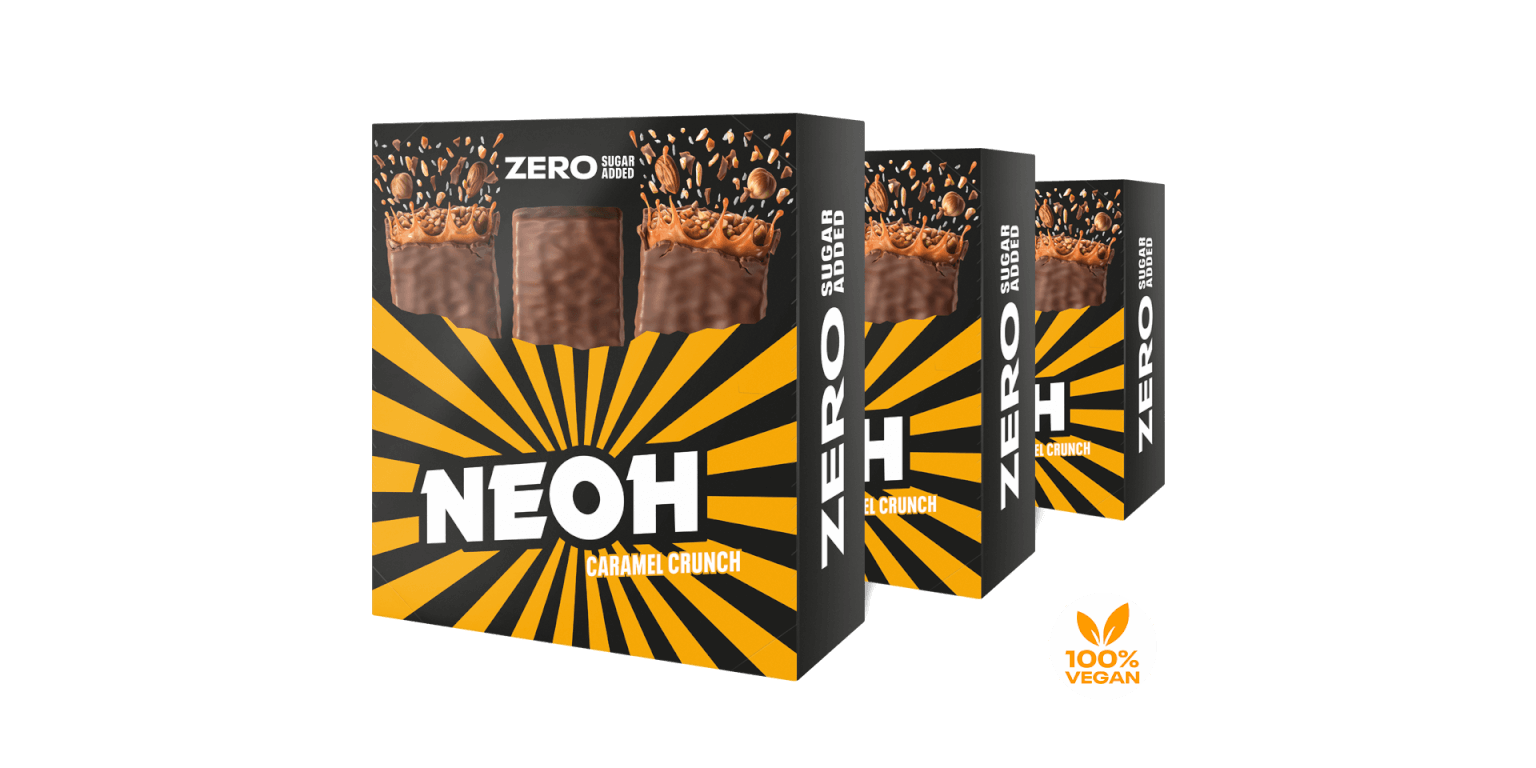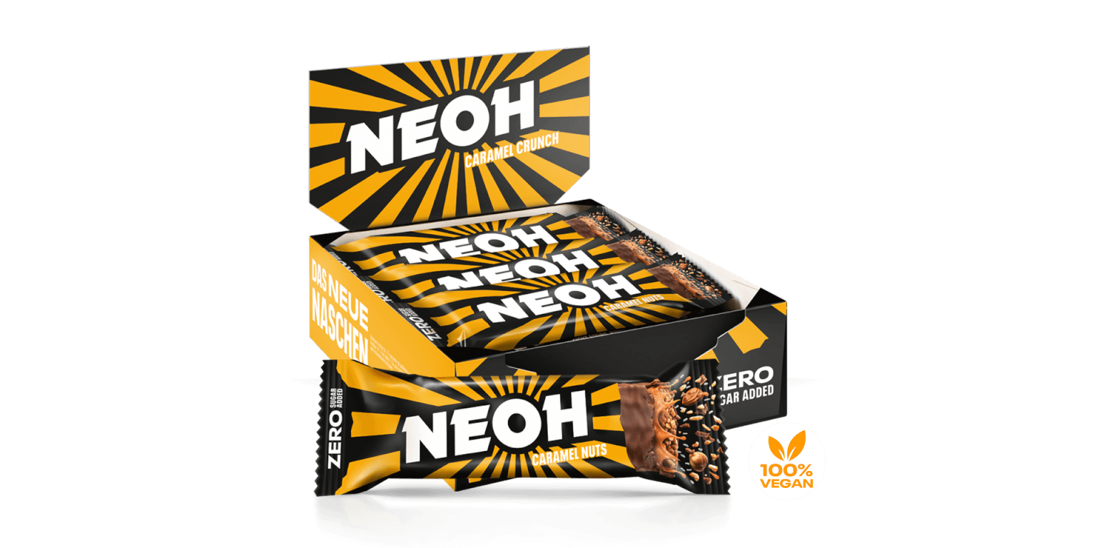 100% vegan and ZERO sugar added. Is that even possible? Yes, the NEOH Caramel Nuts Bar can do both. Get the vegan nut bar with a creamy caramel layer covered in crunchy chocolate.